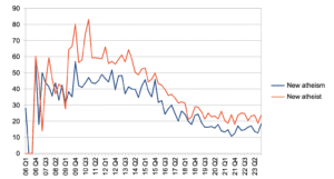 البحث في جوجل عن الإلحاد الجديد من عام ٢٠٠٦ حتى ٢٠٢٣ عالميًا