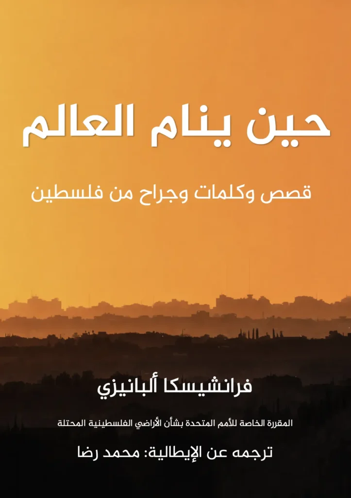 هذا الكتاب هو ترجمة لما كتبته واحدة من هؤلاء الأبطال، السيدة الشريفة النبيلة «فرانشيسكا ألبانيزي»، وكونها مقرّرة خاصة للأمم المتحدة في فلسطين، فهي الأقدر على فهم هذا الواقع قانونيًا، وكذلك عمليًا إذ عاشت في فلسطين ردحًا من الزمن.